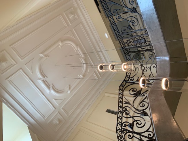 D'autre-part, des parois de l'auditorium et des salles de classe traitées avec du staff déstructuré pour une meilleure acoustique ; des revêtements de sol en carreaux de ciment pour reprendre l'esprit des années 30 ; du mobilier contemporain traité anti réverbération pour amortir le bruit...